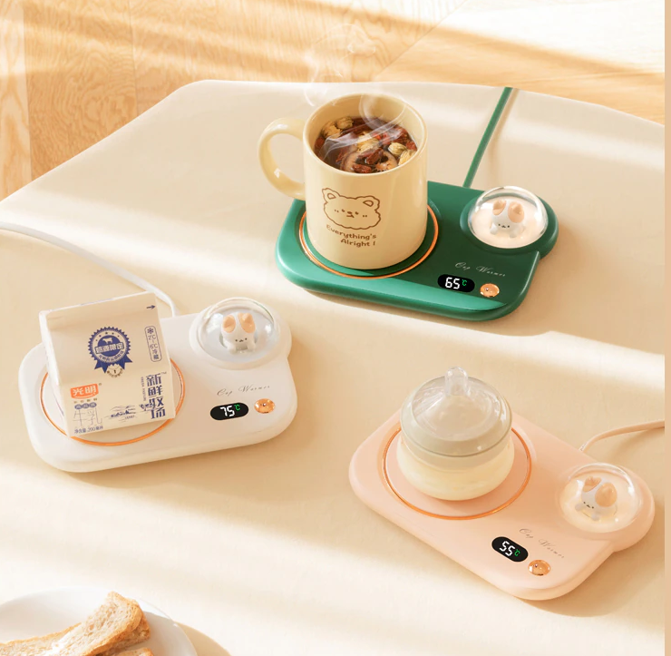 Подогреватель имеет 3 режима нагрева: 55, 65 и 75 градусов Цельсия. Температура выбранного режима отображается на экране, так же имеется подсветка. Устройство автоматически отключается через 8 часов бездействия.