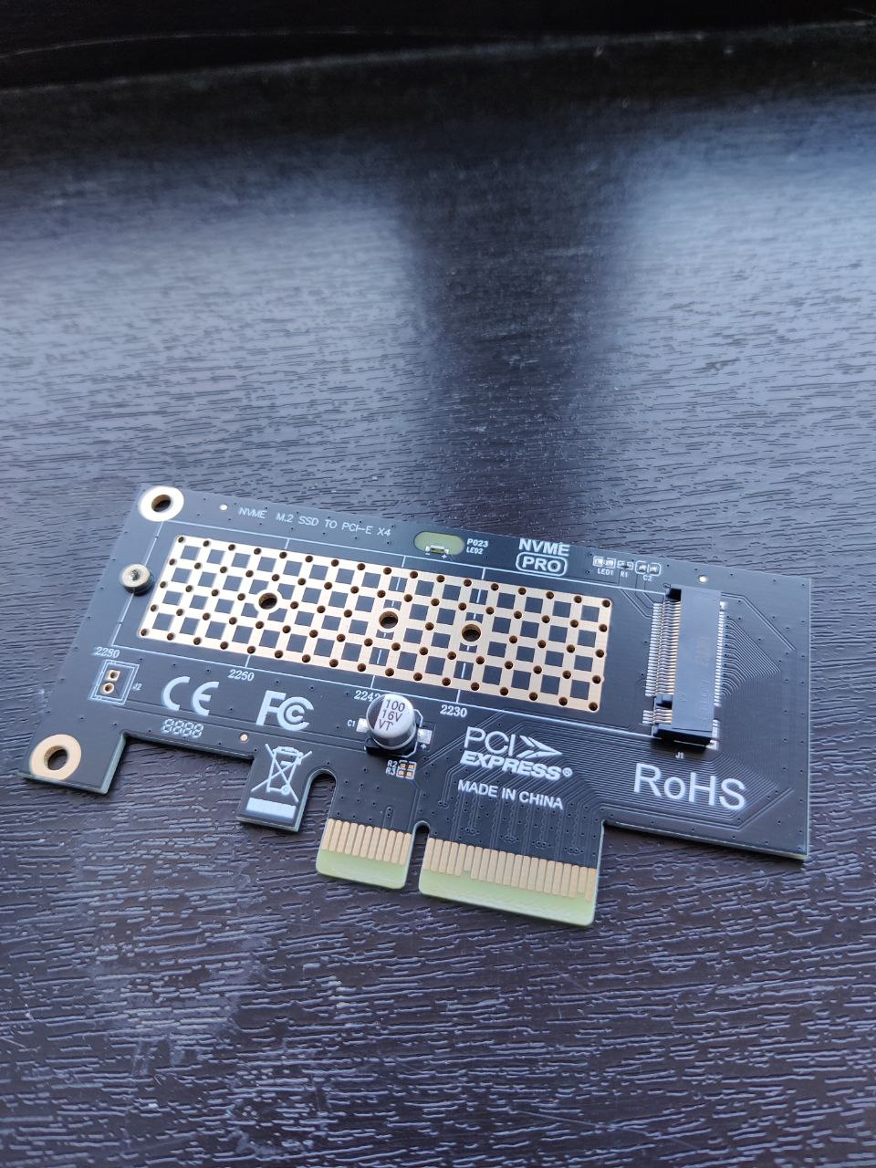 У меня была проблемка - на материнке Asus на моей для второго NVME SSD плохое крепление, видимо заводской брак, поэтому использовал только первый SSD разьем и думал, как бы поставить еще один (бифуркация материнкой не поддерживается, поэтому только для одного ssd). И наткнулся на китайский адаптер на али, ссылку дам ниже, для PCI 3/4. Приехал адаптер неделю назад, воткнул на него имеющийся ssd от kingston и в принципе был удивлен, что все замечательно работает и даже скорости поддерживает родные от этого ssd - это 3500 на чтение и 2400 на запись, тесты подтверждают и меня это полностью устраивает.
