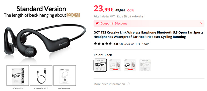 Динамические накладные наушники QCY T22 Crossky Link для занятий спортом и всяких активностей. Специальная форма гарантирует то, что они не слетят ни при каких обстоятельствах, ушной канал наушники не закрывают, автономное время работы - до 10 часов, 10 минут зарядки дают 3 часа прослушивания, Bluetooth 5.3, кодеки SBC и AAC, влагозащита IPX6, зарядка магнитная. Подчеркиваю - это не костная проводимость. Это накладные наушники, разработанные специально для занятий спортом.