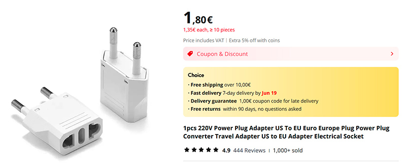 Промокод - IMRU61 скидывает -2$ и применяется от корзины на 5$, поэтому нужно добавить в корзину от 2-х переходников. Обязательно на странице с товаром берём купон -2$ (он применяется в корзине автоматически), плюс в корзине сработает скидка 2-3% за количество.
