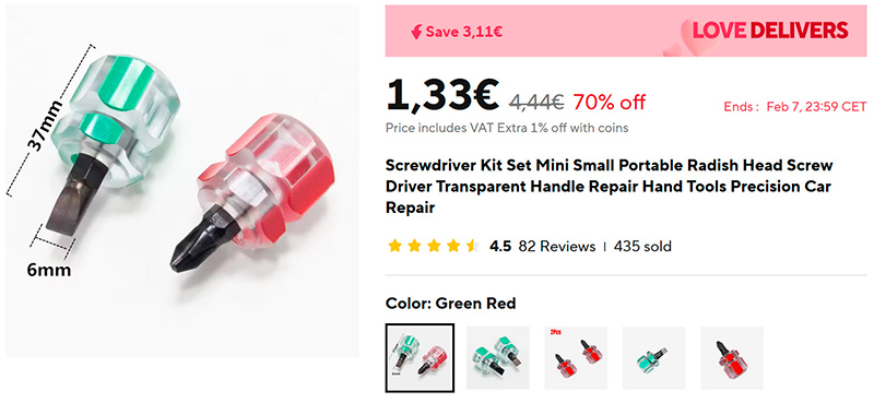 Сверхкомпактные отвертки (ссылка для РФ) - чтобы держать под рукой, и чтобы занимали совсем немного места. В отзывах пишут, что, несмотря на размер, они вполне ухватистые за счет выемок для пальцев на держателе.