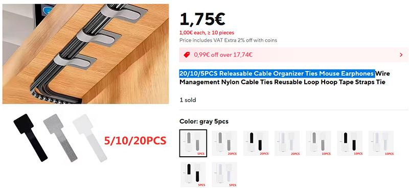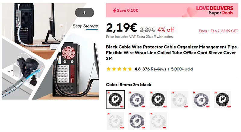 А это трубчатый гибкий органайзер для кабелей (ссылка для РФ), которые болтаются вне стола или под столом. Самое главное - тут в комплект входит инструмент для быстрого и удобного укладывания пучка кабелей в органайзер - посмотрите на видео.