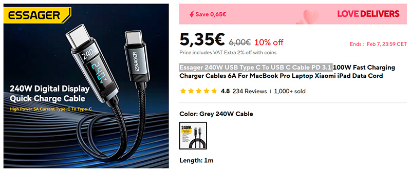 Но если вы не хотите покупать отдельный кабель, то у данного производителя есть насадка на Type-С (ссылка для РФ) с дисплеем, показывающим мощность зарядки.