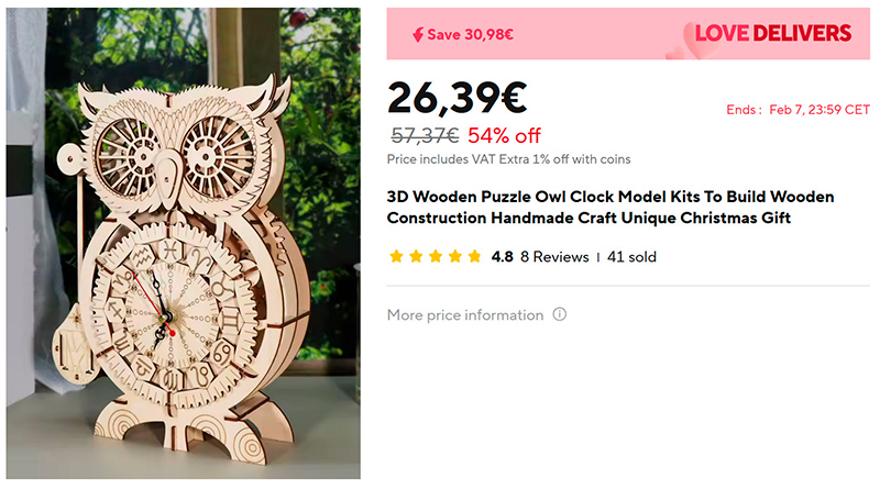 Для любителей деревянных конструкторов - забавно выглядящая сова с часами (ссылка для РФ). Часы настоящие, показывают время.