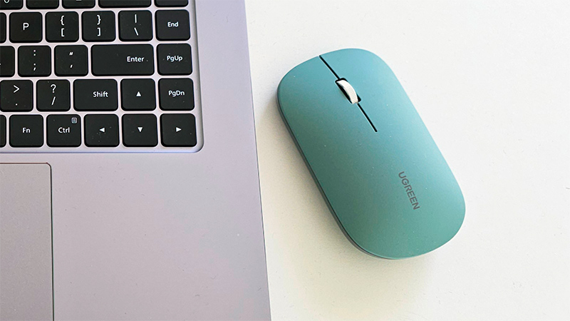 Приехала вот такая компактная мышка Ugreen (ссылка для РФ) с подключением по Bluetooth 5.0 или через специальный адаптер. Мышка почти плоская, разрешение 4000 DPI (регулируется), очень тихие кнопки и бесшумное колесико. С неделю ее погонял - вполне нравится. Я сейчас больше люблю маленькие мышки, и мне очень важно, чтобы кнопки и колесико были бесшумные. Да и стоит она меньше 20 евро - это реально дешево для приличной мышки с подключением по Bluetooth.