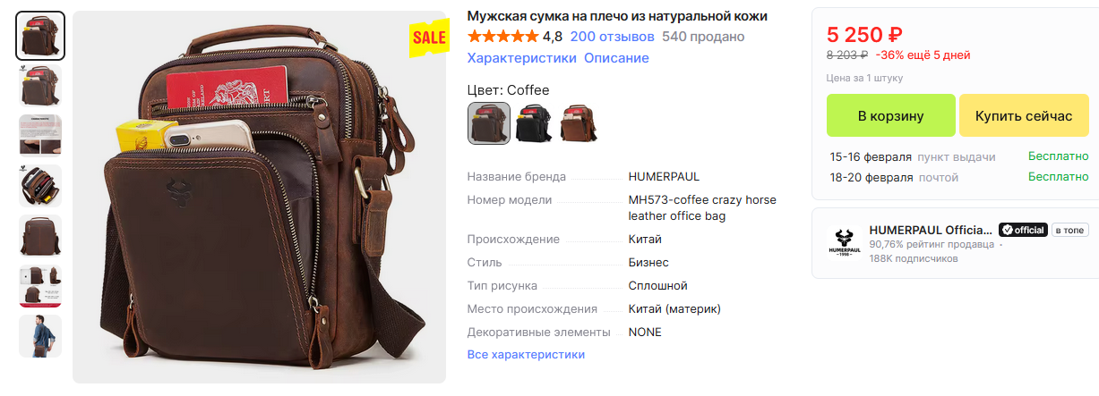 Кожаная мужская сумка на зонте существенно дешевле выйдет, я так понимаю от туда же везут?