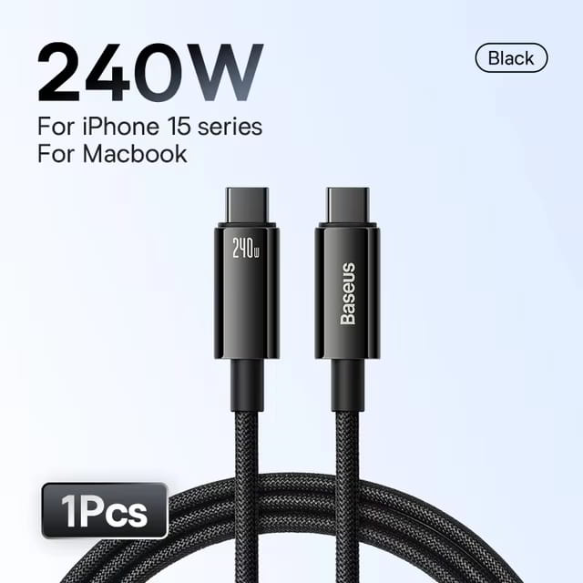 Для тех, кому нужна высокая мощность при зарядке через Type-C: Кабель Type-c C Baseus на 240 Вт.