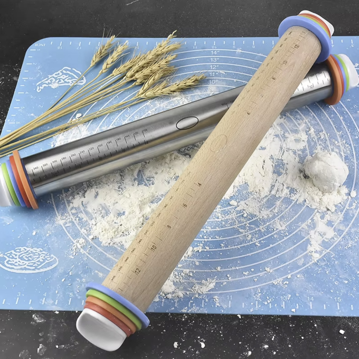 удобнее вчерновую раскатать обычной скалкой с тонкими ручками (желательно вертящимися независимо от тела скалки), а потом этой докалибровать.