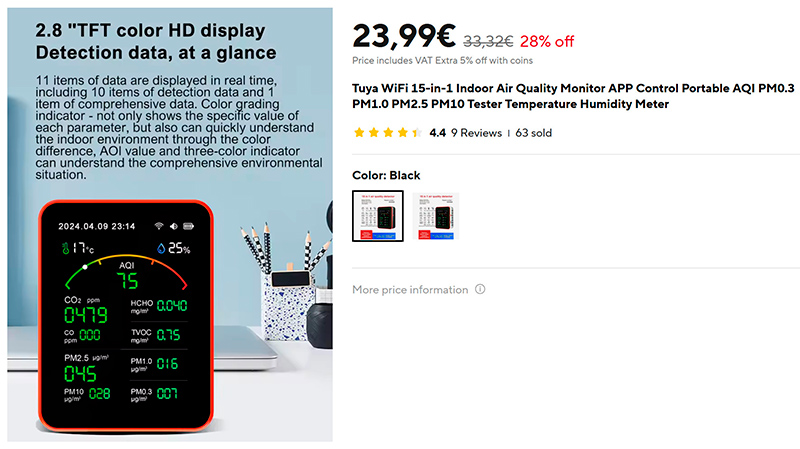 Детектор воздуха "15 в 1" (ссылка для РФ) от известного производителя Tuya.
