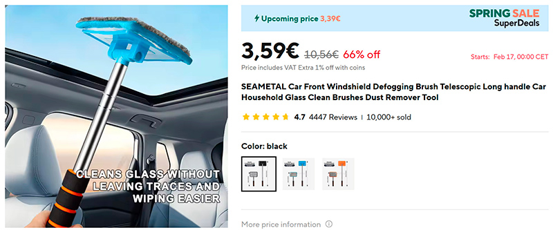 Ну и если вы считаете, что эта пластмасска - недостаточно прочная и скоро развалится, то для вас есть более надежный, но и более дорогой (аж на €1,14 дороже) - аналогичное устройство с телескопической металлической ручкой (ссылка для РФ). Вот ее-то я и закажу, она и надежнее, и компактнее.