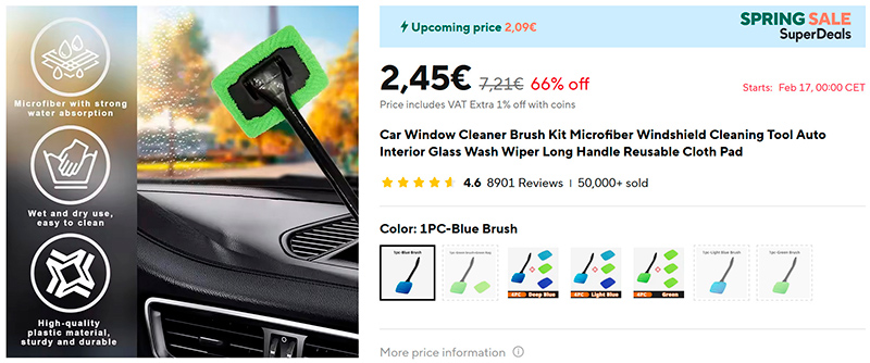 Простенькое, но очень полезное устройство для протирки стекол автомобиля (ссылка для РФ) - держалка с ручкой из пластика, на которую надевается тряпочка из микрофибры. И если снаружи я спокойно протру стекло просто тряпкой, то вот протирка ветрового стекла изнутри - это та еще задача, если нет подобной штуки. В отзывах пишут, что после приобретения устройства ветровое стекло стало такое чистое, что временами народ, садясь в машину, даже пугался - неужели стекло украли?!! Рекомендую, кстати, сразу заказать с запасными тряпочками, пригодится.