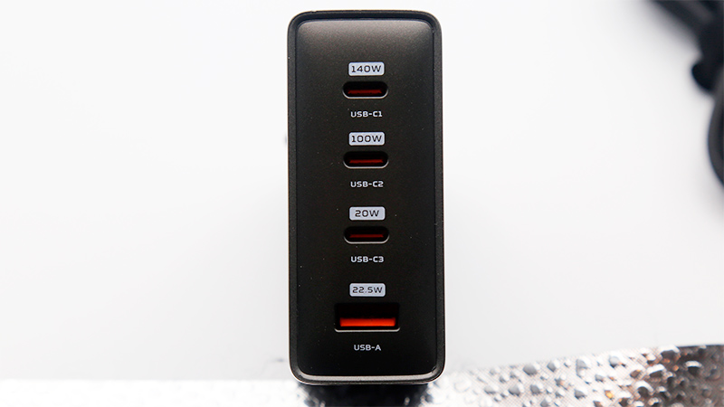 Три порта Type-C на 140, 100 и 20 Вт, порт USB-A на 22,5 Вт.