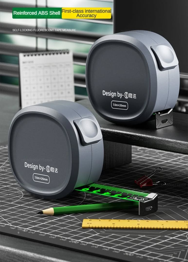 4 длины на выбор - 3, 5, 7,5 и 10 м. 3- и 5-метровые можно выбрать меньшей длины. Неоновые цифры. Измерения точные. Автоблокировка, автоматический возврат, кнопка сматывания. Выдерживает легкий вес.