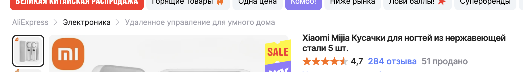 Набор для ухода за ногтями Xiaomi Mijia (ссылка для РФ). Мне для поездок такой нужен, заказал. А то я как-то заказывал аналогичный набор в Германии - "настоящее немецкое качество", - так там ножницы стали ржаветь через неделю после начала использования. Посмотрим, как с этим делом у Xiaomi. Что-то мне подсказывает, что должно быть получше. Я уже с этим "настоящим немецким качеством" несколько раз здорово прокалывался.