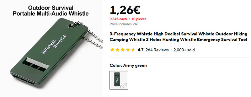 3-частотный свисток MOONBIFFY (ссылка для РФ) с высоким уровнем звука. Компактный аксессуар, который может избавить от определенных неприятностей, а в некоторых случаях может даже спасти жизнь. Этот свисток поможет вам подать сигнал о помощи, если вы заблудились в лесу или подверглись нападению грабителей. Такой звук привлекает внимание патрульных полицейских, а злоумышленники, услышав этот звук, обычно убегают, предпочитают не связываться. Для подобных случаев есть электронные ревуны, но у них могут быть очень неприятные ложные срабатывания, а свисток - штука простая и надежная.