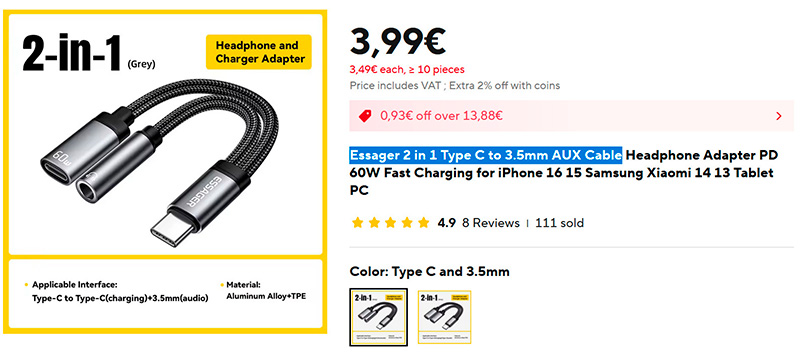 Если вы для смартфона пользуетесь проводными наушниками, то вам, во-первых, нужен переходник с Type-C на аудиоджек, потому что современные смартфоны почти все без аудиоджека, а, во-вторых, вам может понадобиться заряжать смартфон во время прослушивания. Для этой цели пригодится вот такой простенький разветвитель (ссылка для РФ), благодаря которому можно слушать аудио и одновременно заряжать смартфон. Если же вы обзавелись наушниками с кабелем Type-C, то по той же ссылке есть разветвитель на два Type-C.