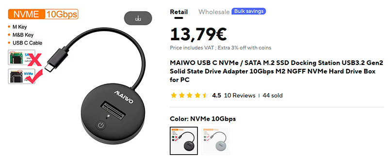 Совершенно необязательно покупать специальный корпус для SSD M.2 NVMe, чтобы сделать сверхбыстрый внешний диск. Можно купить вот такой переходник (ссылка для РФ) для твердотельных дисков подобного типа, и втыкать SSD M.2 в него. И SSD можно менять, если что. Универсальный вариант.