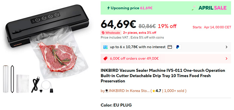 Если хочется вакууматор с большими возможностями - тогда вот эта модель INKBIRD Vacuum Sealer (ссылка для РФ): у него, кроме всего прочего, еще есть встроенный резак для пакетов, что очень удобно.
