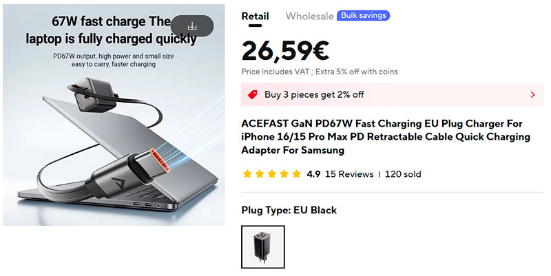 А как вам ноунейм зарядка 67Вт за 26 евро, пусть даже и с кабелем? Когда кругом полно минимум в 2 раза дешевле, вон например Toocki 67Вт за 10 долл