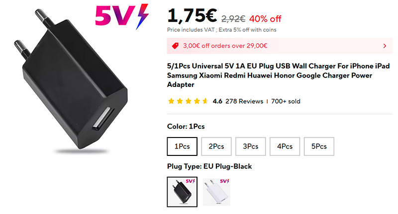 Иногда бывает нужен совсем простенький и дешевый адаптер на 5 Вт - электробритву зарядить, часы подключить, наушники для зарядки и так далее. И чтобы не городить огород с дорогими адаптерами на несколько портов, проще купить пару копеечных адаптеров (ссылка для РФ). Я в свое время их купил штук пять, о чем совсем не пожалел