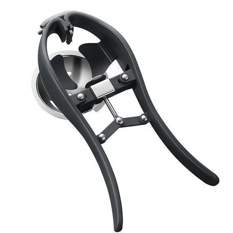 Нет-нет! Посмотрите еще раз на статическое фото (на гифке не успеваешь заметить). Если мысленно начать сжимать ручки, то верхняя часть с зубцами не начнет раздвигаться до тех пор пока длина штока не закончится, либо пока шток не упрется в препятствие. Только после этого происходит прокол и раскрытие вверху. Кто-то хорошо продумал конструкцию, чтобы калибровка не требовалась.