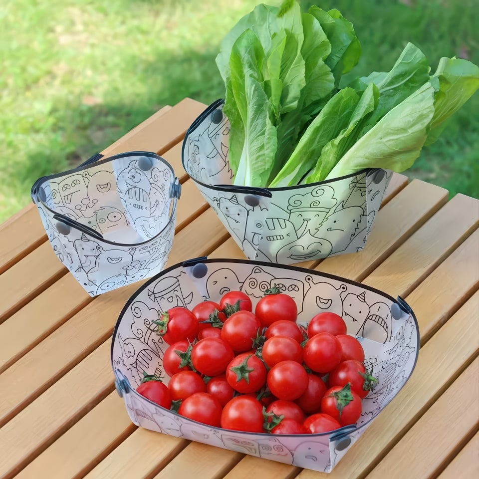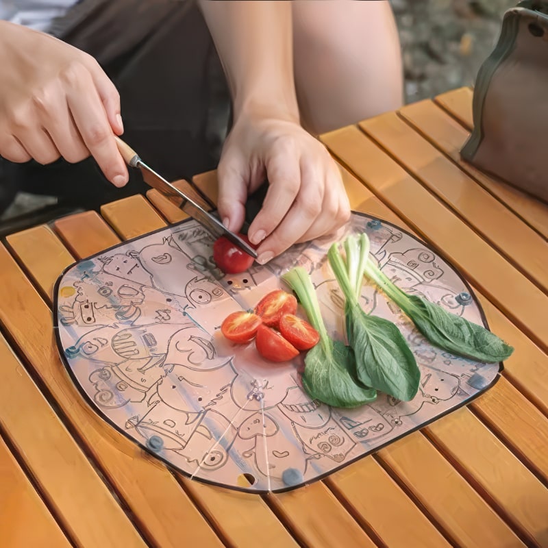 Складная многоразовая посуда для кемпинга и походов (ссылка РФ) - чашка, миска, тарелка. Собираются за несколько секунд c помощью встроенных клёпок. В разобранном виде плоские, что удобно для транспортировки, а также позволяет использовать их как доску для нарезания.