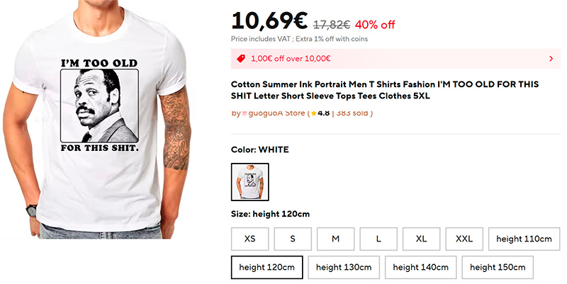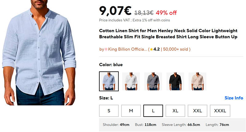 Хотя, нет, не буду дезинформировать, - это на Temu так. От 5 евро с центами начинается, если хлопок. При таких ценах, я на Али уже и не смотрел.