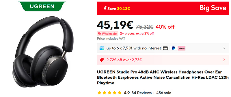 Новые полноформатные наушники с активным шумодавом UGREEN Studio Pro (ссылка для РФ). Кодеки высокого разрешения AAC и LDAC, шумодав -48 ДБ, 4 вида шумоподавления, чистый голос в режиме гарнитуры с подавлением окружающего шума, низкая задержка при играх, автономность - 120 часов, настройка через приложение, поддержка Bluetooth 6.0, мультипоинт, складные.