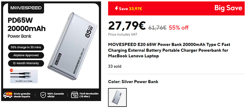 Во время недавнего блэкаута оценил наличие внешнего аккумулятора для ноутбука, который позволил в полтора раза продлить время работы ноута (там очень емкая батарея). Я сейчас использую аккумулятор QOOVI 20000mAh PD 45W (ссылка для РФ), а тут выяснил, что компания MOVESPEED (отличный производитель, у меня много их устройств) выпустила аналогичный аккумулятор на MOVESPEED 20000 мАч PD 65W (ссылка для РФ), который и быстрее (мощность зарядки больше) и дешевле. Я заказал (мне нужен второй аккумулятор для ноутбука сына), проверю, но уверен, что тут все параметры соответствуют заявленным - этот производитель меня еще ни разу не подводил.