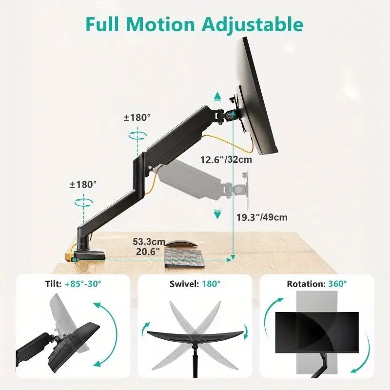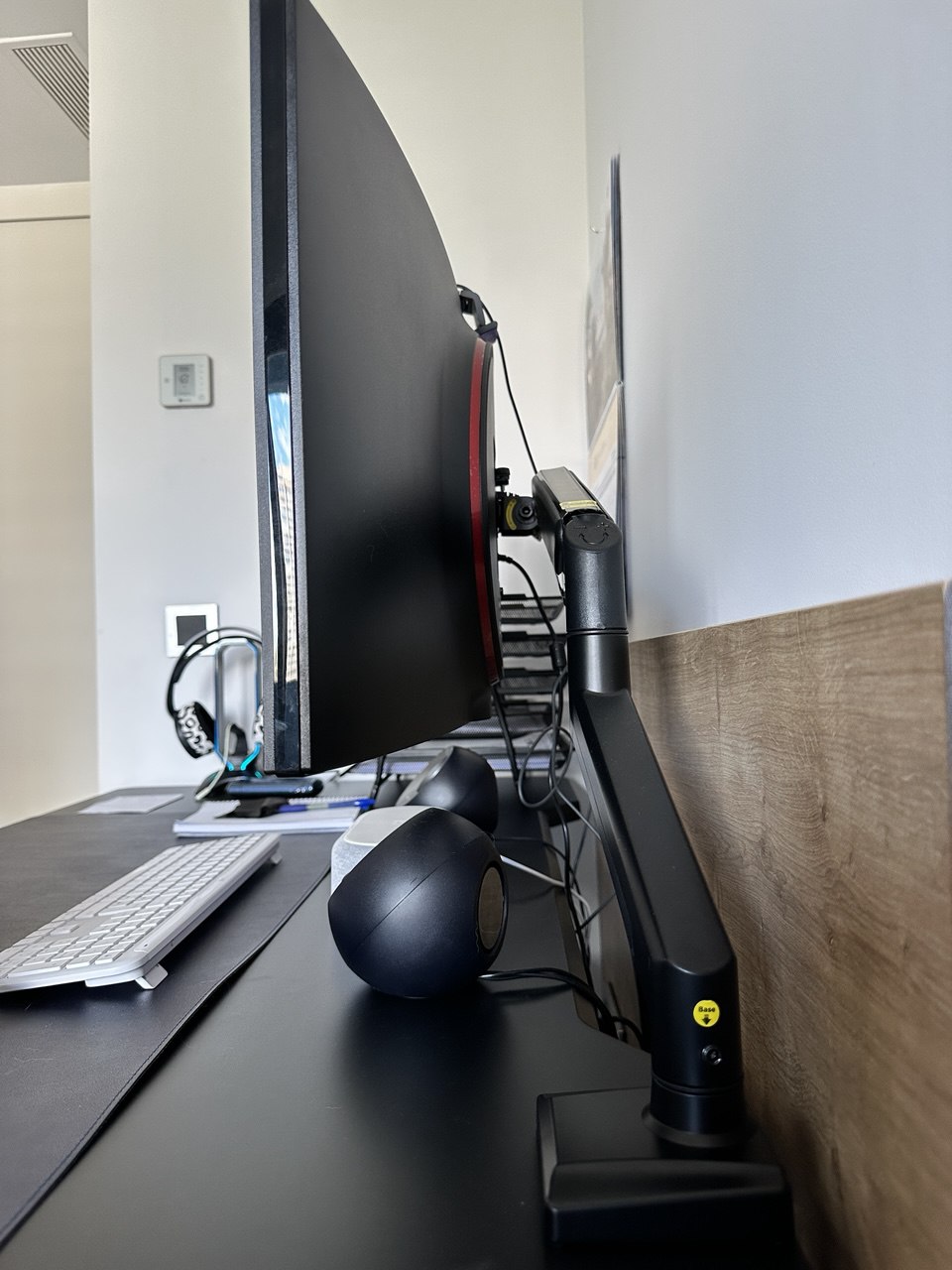 Настольный кронштейн для монитора 34". У меня у монитора была довольно большая нога, которая занимала много места на столе и честно раздражала. Решил перевесить на кронштейн. Искал такой, чтобы мой монитор 34" держал уверенно, чтобы газлифт был во всех отсеках регулировки, чтобы ничего не сползало, и при этом можно было стол задвинуть вплотную к стене. В итоге пишу уже по опыту, я получил ровно то, что хотел, сборка простая, инструкция понятная, конструкция надежная, монитор висит уверенно, есть регулировки в трех плоскостях, крутилками можно ослаблять или наоборот закреплять выбранное положение. Сам кронштейн выполнен качественно и приятный на ощупь, думаю на Амазоне я бы купил плюс минус тоже самое. Я доволен, так как получил ровно то, что надо. Привожу фото из магазина и фотографию, как у меня смотрится в реальности.