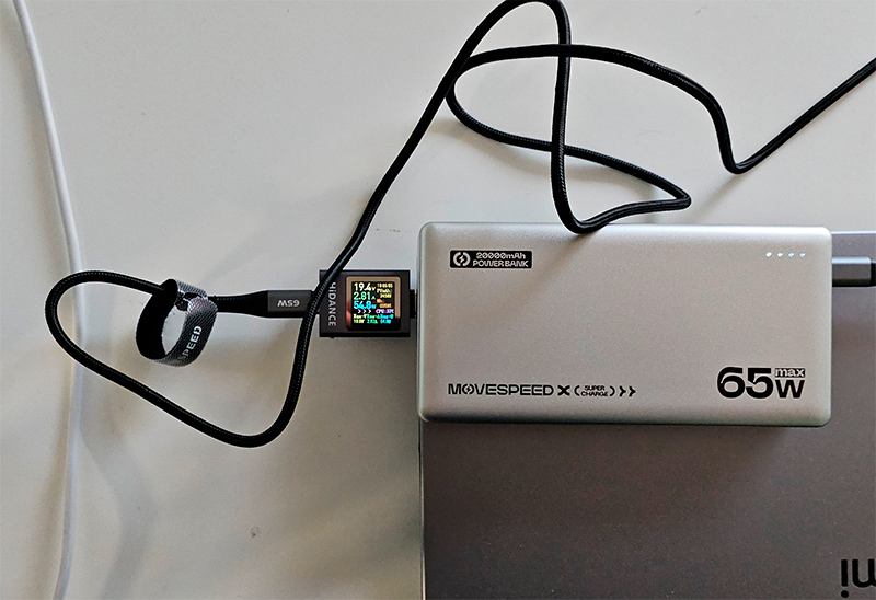 Приехал мне новый аккумулятор для ноутбука, о котором я уже писал - это MOVESPEED 20000 мАч PD 65W (ссылка для РФ). Он совсем недорогой, при этом имеет хорошую мощность 65 Вт (и сам заряжается на такой мощности и заряжает на ней же).