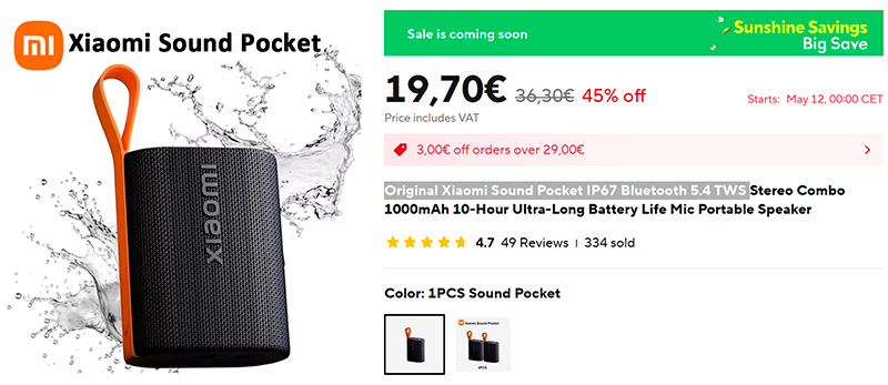 Сверхкомпактная беспроводная колонка Xiaomi (ссылка для РФ). Весит меньше 200 граммов, автономность - 10 часов. Если купить их две, то они могут работать стереопарой.