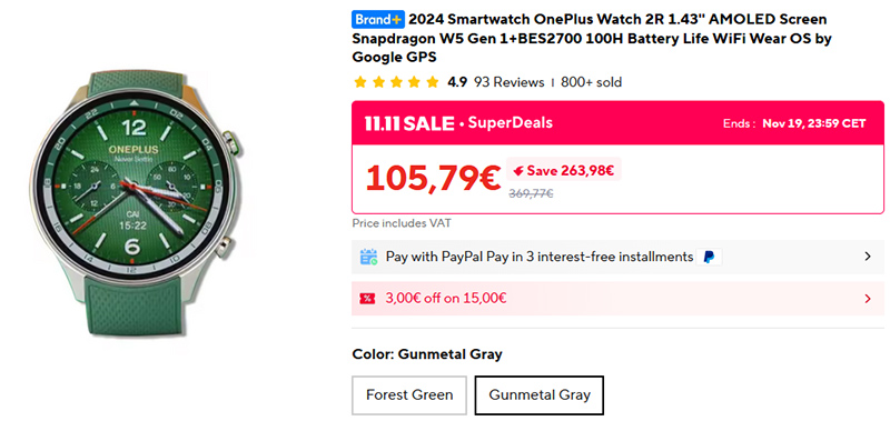 Умные часы OnePlus Watch 2R сейчас можно купить всего за 106 евро. Это предыдущая модель перед OnePlus Watch 3 (мой обзор, они мне очень понравились), которая стоит почти в два раза дороже, а отличия между ними не настолько существенные.