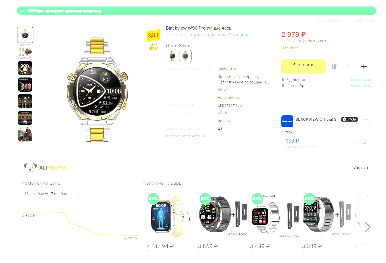 кидка в официальном магазине бренда. 2 цвета на выбор, 1.43" экран, аккумулятор 900 мАч, подключаются по Bluetooth 5.3, корпус из цинкового сплава и ремешок из нержавеющей стали 304 с позолотой 14 карат. Имеют 100+ спортивных режимов и мониторят показатели здоровья.