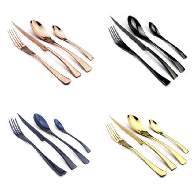 Набор столовых приборов JANKNG на 6 персон (24 предмета) с оригинальным и, что важно, вполне функциональным дизайном. Тёмно-синий - самый стильный )