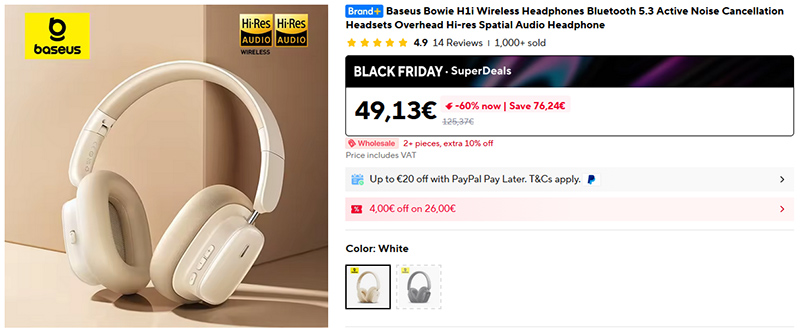 Интересные полноформатные беспроводные наушники Baseus Bowie H1i с активным шумодавом. Автономность до 100 часов, управление кнопочное, кодеки SBC/AAC/LDAC, Bluetooth 5.3, дополнительное управление через приложение.