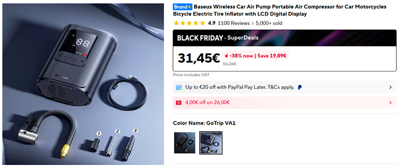 Компактный беспроводной компрессор Baseus: для автомобилей, мотоциклов, велосипедов, мячей, надувных матрасов и так далее. Насадки и кабель для зарядки входят в комплект.