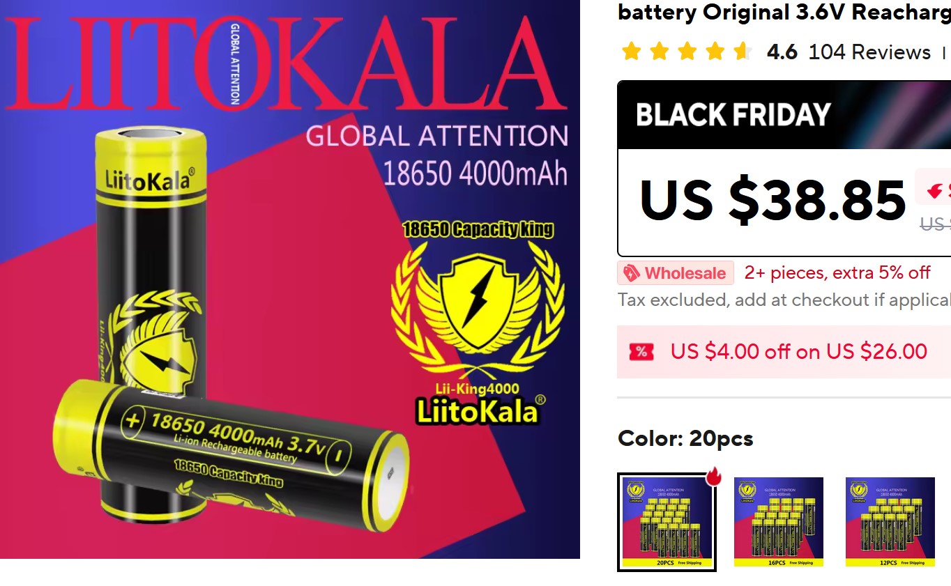 Сцылко на зарядку Litokala Lii-PD4, обошлась в 16.7 евро.