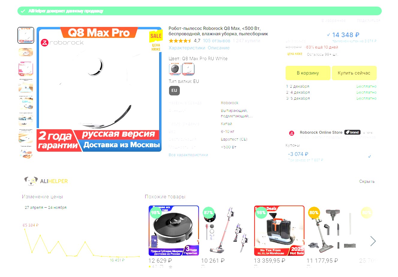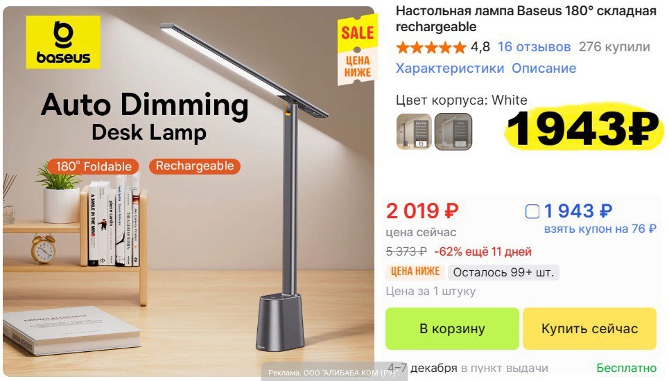 С купоном на 691рубль который берется на странице цена становится не прилично низкой - 568 ₽