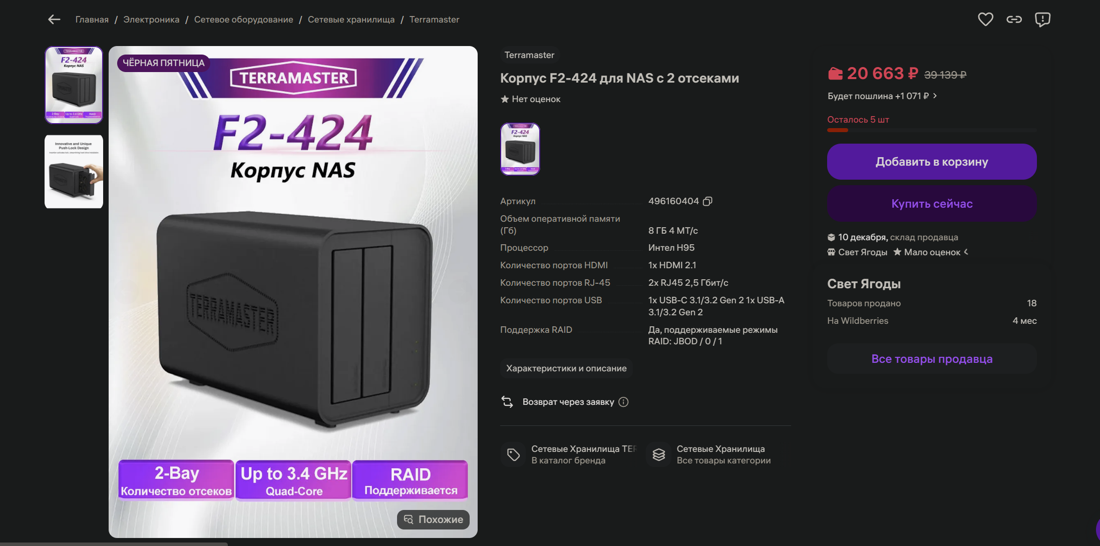 Цена за 1 Тб - 7 409 руб.