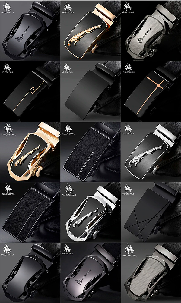 Моя слабость - ремни без дырок с металлической пряжкой. В данном случае - кожаные с большим выбором видов пряжек. Единственное, чего я не понимаю, так это ненависть и отвращение китайцев к шлевке (петельке, которая придерживает свободный конец ремня). Я покупал вида четыре разных ремней (не люблю их переставлять из одних джинсов в другие), так все они были без шлевки. Впрочем, это вопрос решаемый, если есть выбор длины ремня (здесь он есть, также есть таблица размеров). В этом случае просто покупаешь недлинный ремень, чтобы торчащий кончик ремня шлевки не требовал. Но в предыдущих случаях я об этом не задумывался, покупал самый длинный, с запасом, ну и без шлевки было грустновато.