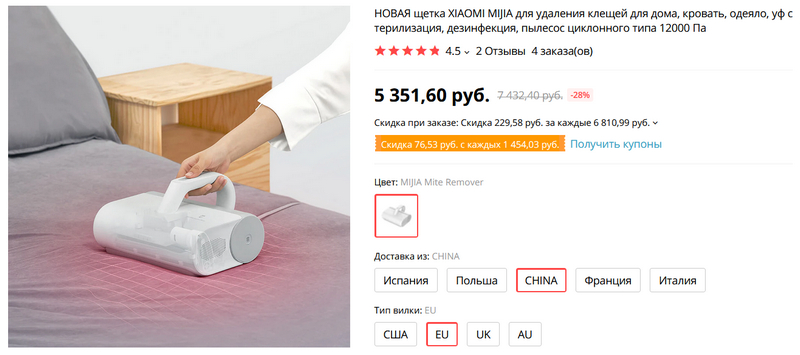 - Купоном продавца (берется на странице с товаром) – 153,06 руб