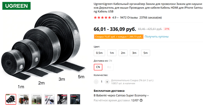 Заказал себе такую ленту-липучку - в два раза дешевле, чем указанная от UGreen. Уверен, что производятся они на одном заводе.