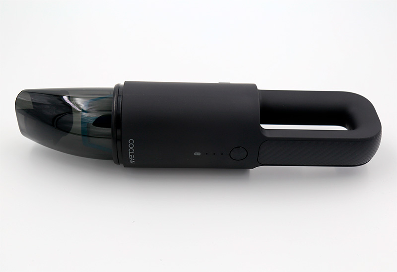 Вот он в рабочем состоянии. Кстати, приезжает полностью заряженный, а одного заряда хватает надолго. Я точное время работы не замерял, но одна полная и тщательная очистка салона в течение, наверное, минут двадцати погасила один индикатор зарядки из трех.