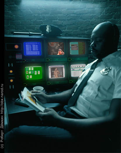 Традиционная картинка от Роберта Демкина. Называется - "Системный администратор". Обратите особое внимание на экраны мониторов.