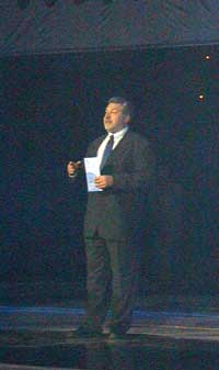 2) В момент объявления списка из пяти претендентов по каждой номинации сверху на экране выводились URL-ы финалистов. По странному стечению обстоятельств, эти URL-ы практически никогда не совпадали с тем, что в данный момент называлось. Кстати, организаторы обещали, что сделают как на "Оскаре": в момент перечисления финалистов каждого из них будут показывать на экране. Этого не было, хотя кинооператоров в зале было чуть ли не больше, чем зрителей. Впрочем, в номинации "Персональная страница" этот минус обратился в плюс, потому что когда Гусман громко зачитал одного из номинантов - "Домик голубой крысы", на экране появилась гордая надпись www.exler.ru, и народ обхохотался. Я обхохотался вместе с народом, потому что желтым земляным червяком меня называли много раз, а вот голубой крысой - еще ни разу.