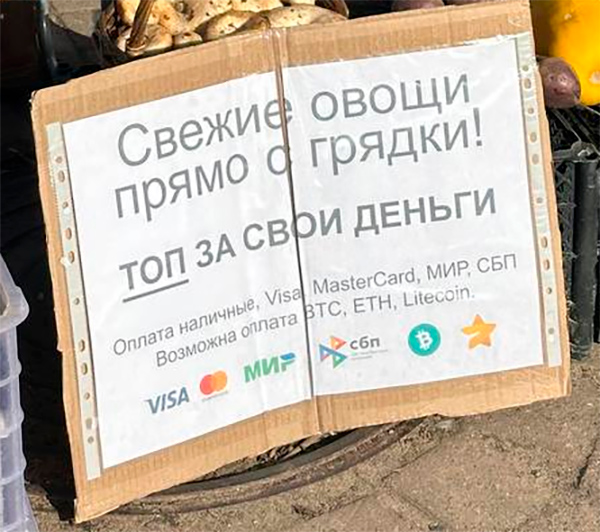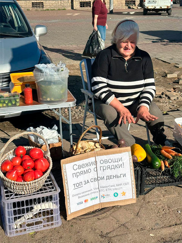 Смотрите, какая тетенька продвинутая, радуется Непролаз. За овощи с грядки аж биткоинами можно платить!