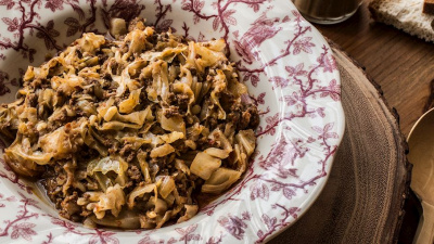 Это блюдо из требухи готовится как ароматное, сытное рагу, которое традиционно используется для панини ди лампредотто - сэндвичей с булочками, наполненных горячим нарезанным лампредотто, увенчанным ложкой итальянского соуса из трав сальса верде.