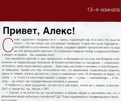 В новой "Компьютерре" (16-й номер) в разделе "13-я комната" содержится персональный привет мне от Сергея Леонова (ссылку дать не могу, номер еще не выложен на сайт).