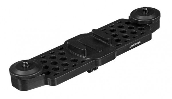 Предварительно что-то нашел. Вот такая Lume Cube - Mounting Bar for GoPro Camera, а к ней два держателя от Vastar. Планка без ручек, но два смартфона уже можно прицепить рядом.